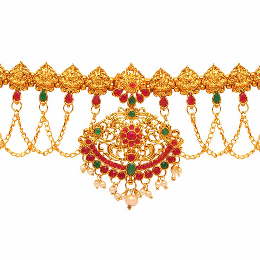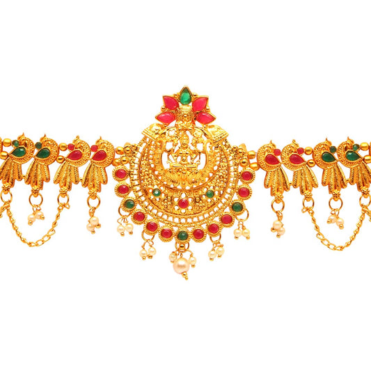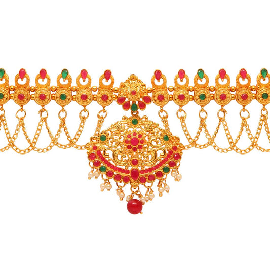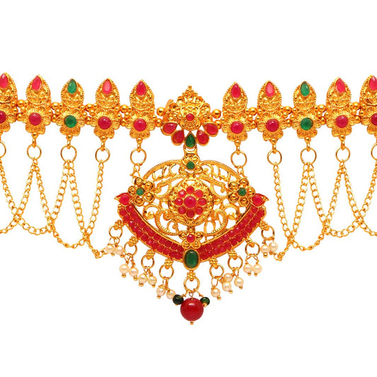 Maroon & Green Color Glass Stone Kamarband (KMBND303MG)
