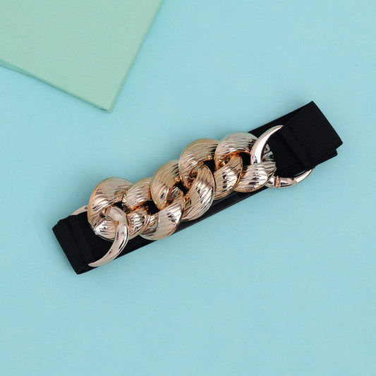 Gold & Black Color Kamarband Elastic Waist Belt For Women//Girls (KMBND493GLD)