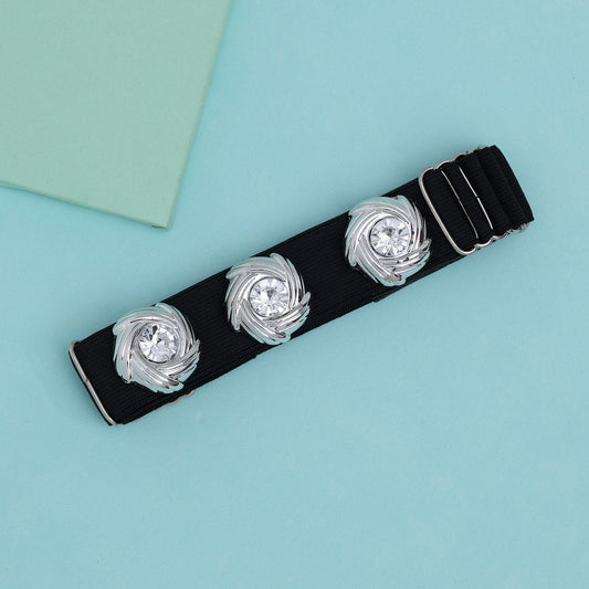 Silver & Black Color Kamarband Elastic Waist Belt For Women//Girls (KMBND495SLV)