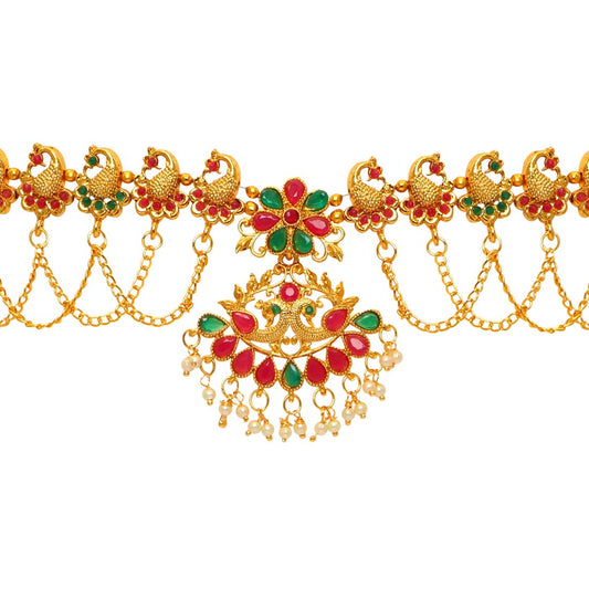 Maroon & Green Color Glass Stone Kamarband (KMBND345MG)