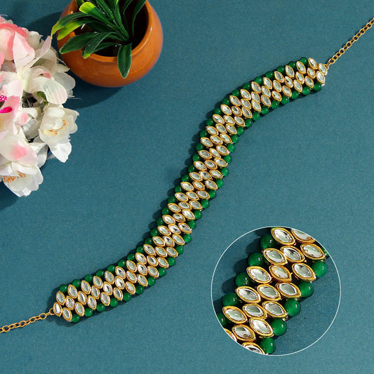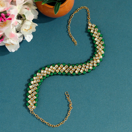 Green Color Kundan Hair Band/Chain Matha Patti (MTP317GRN)