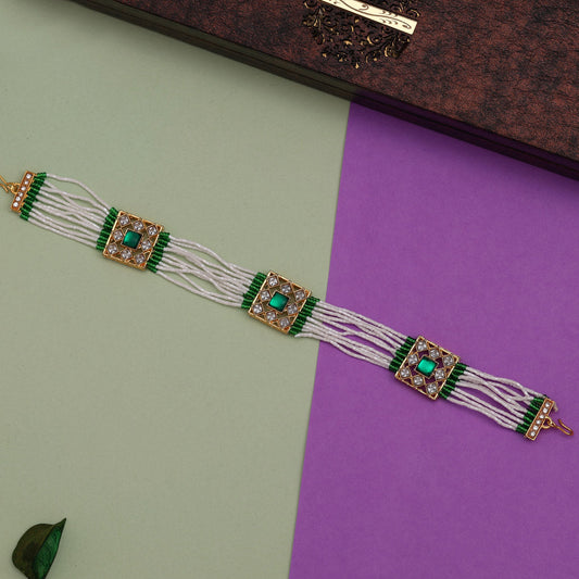 Green Color Rajasthani Borla Kundan Matha Patti (MTP366GRN)