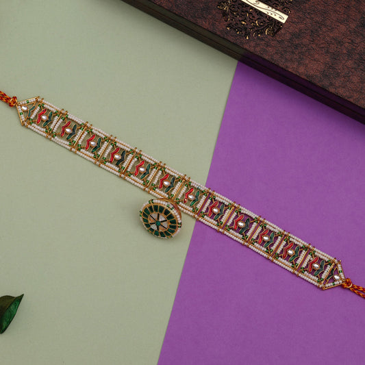 Maroon & Green Color Glass Stone Kamarband (KMBND249MG)