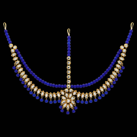 Blue Color Imitation Pearl & Kundan Work Matha Patti (MTP38BLU)