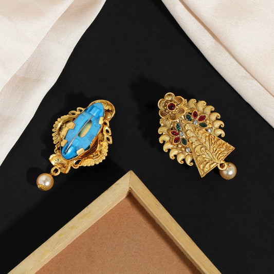 Assorted Color Kundan Nose Pin Combo Of 5 Pieces (NSP185CMB)