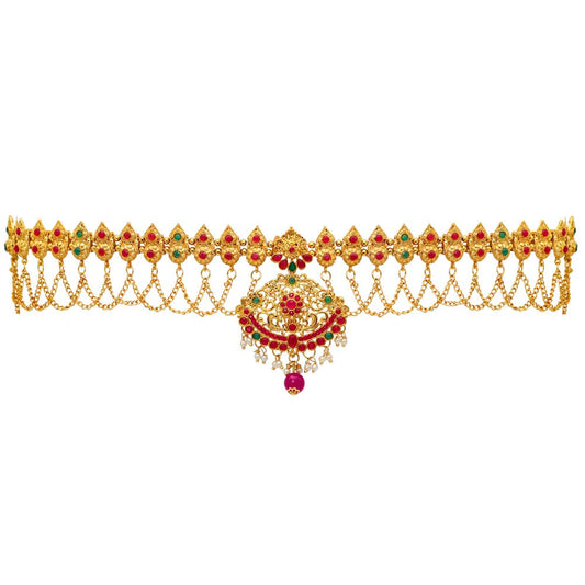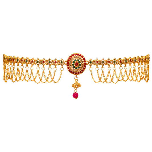 Maroon & Green Color Glass Stone Kamarband (KMBND203MG)