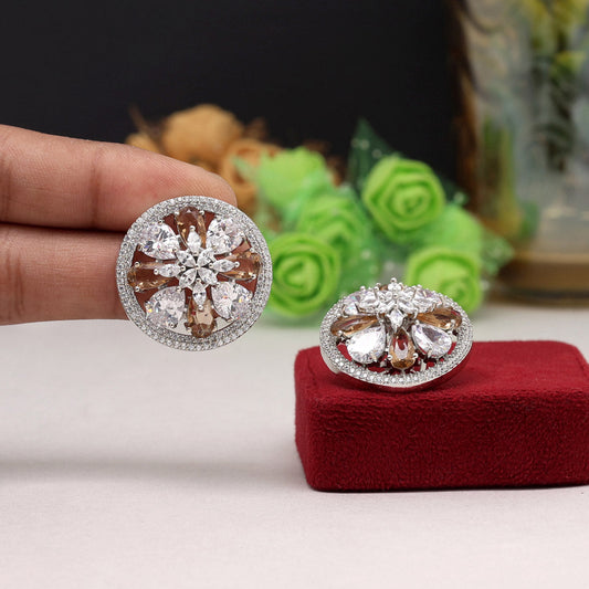 Silver Color American Diamond Earrings For Elegant Party Wear Dressing