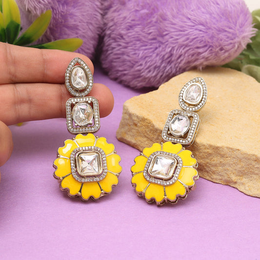Yellow Color Meena Work Kundan Earrings (KDE1023YLW)