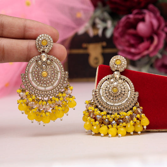 Yellow Color Kundan Pakistani Earrings (KDE979YLW)