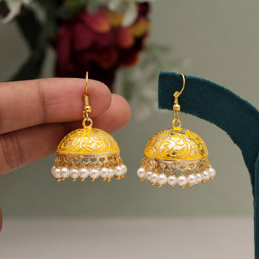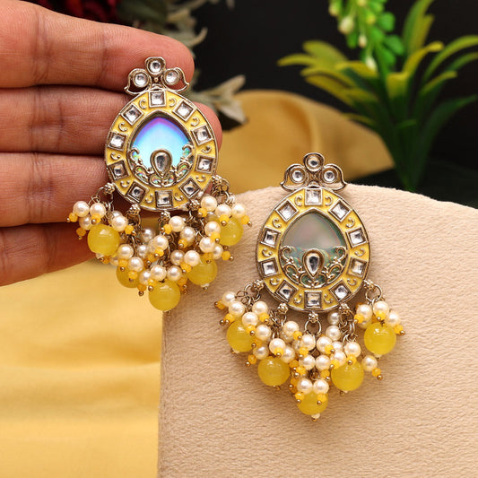 Yellow Color Meenakari Earrings (MKE1128YLW)