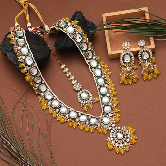 Yellow Color Long Kundan Necklace Set (KN1425YLW)