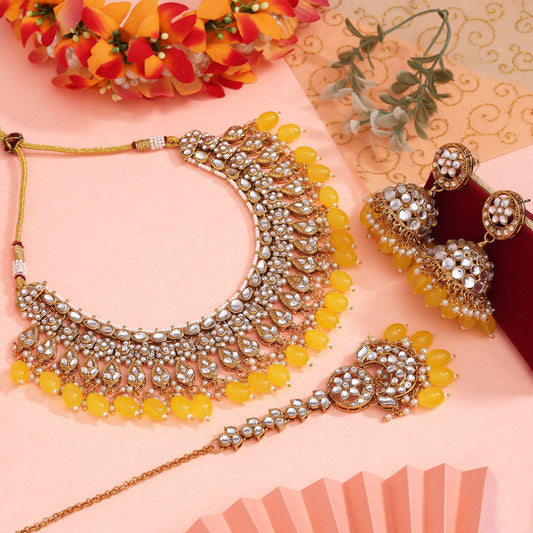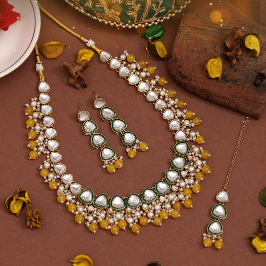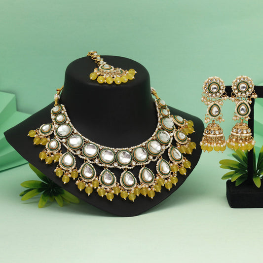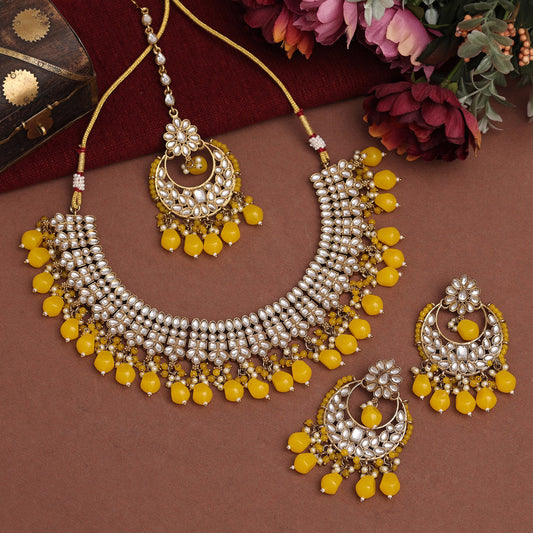 Yellow Color Kundan Necklace Set (KN1388YLW)