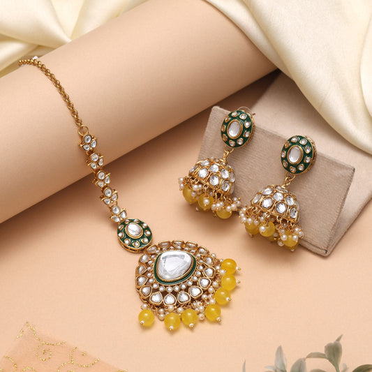 Yellow Color Kundan Necklace Set Perfect For Festive Occasions And Weddings