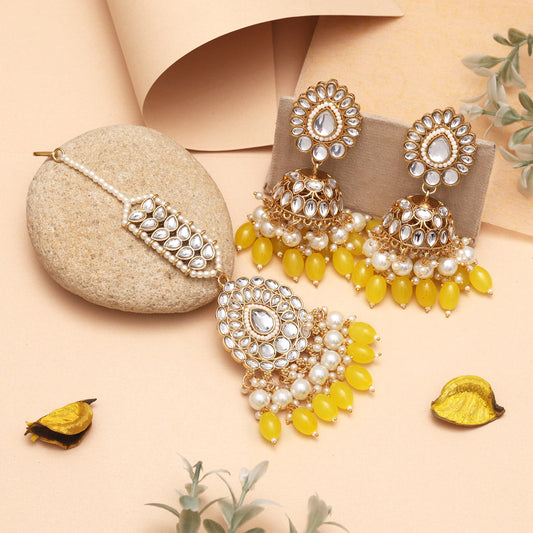 Yellow Color Kundan Pakistani Earrings (KDE980YLW)