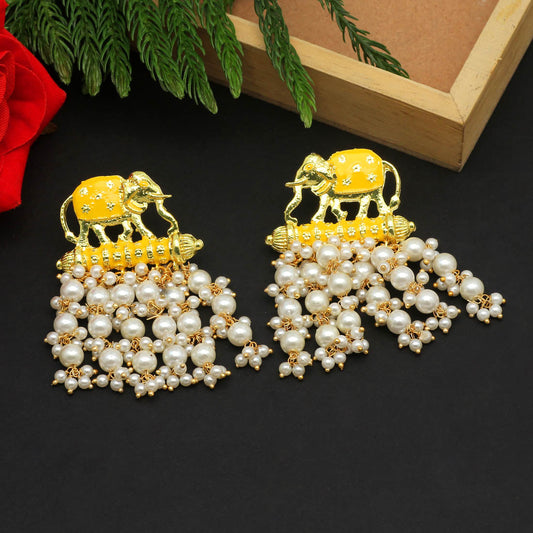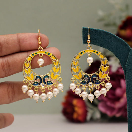Yellow Color Meenakari Earrings (MKE1785YLW)