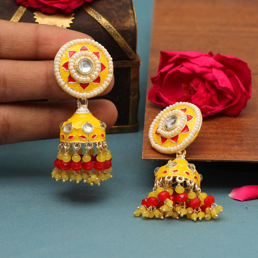 Yellow Color Meenakari Earrings (MKE1974YLW)