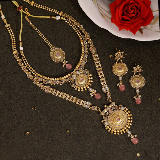 Pink Color Premium Quality Handmade In Jaipur Brass Ad & Monalisa Stone Necklace Set (CZN1071PNK)