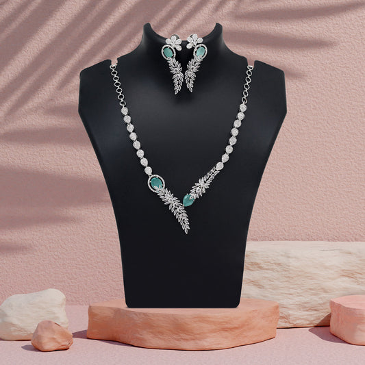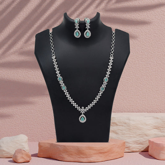 Pista Green Color American Diamond Necklace Set (CZN926PGRN)