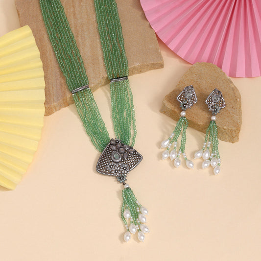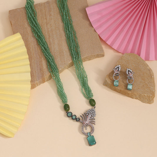 Pista Green Color American Diamond Necklace Set (CZN1034PGRN)