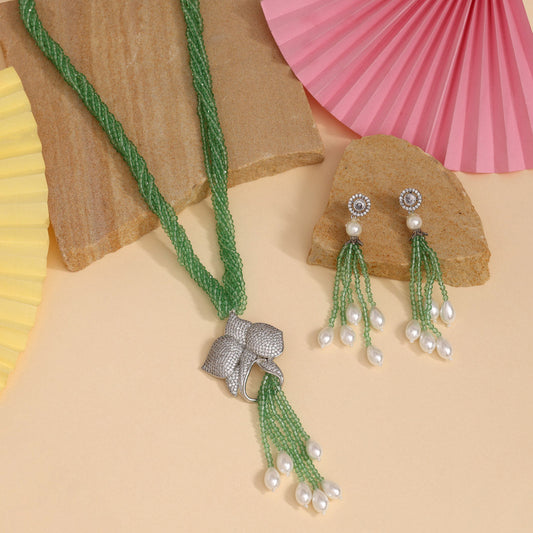 Pista Green Color American Diamond Necklace Set (CZN1020PGRN)