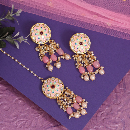Pink Color Premium Quality Moissanite Kundan Necklace Set (CZN1070PNK)