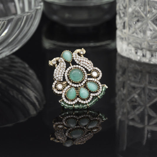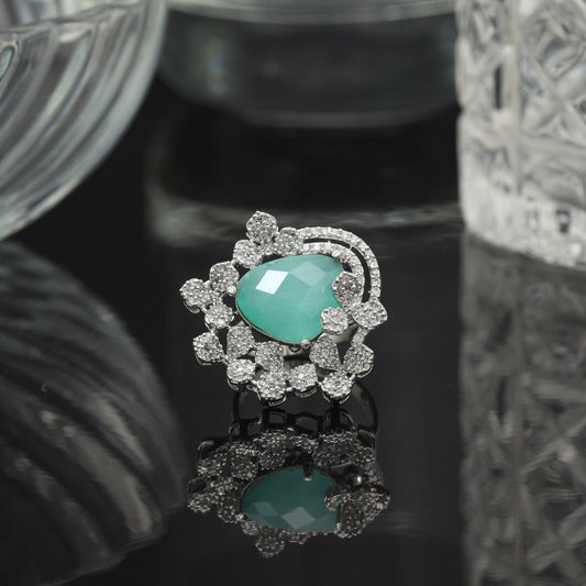 Pista Green Color American Diamond Finger Ring