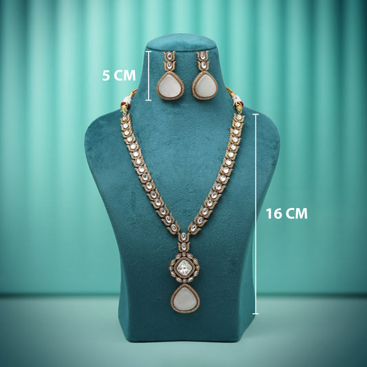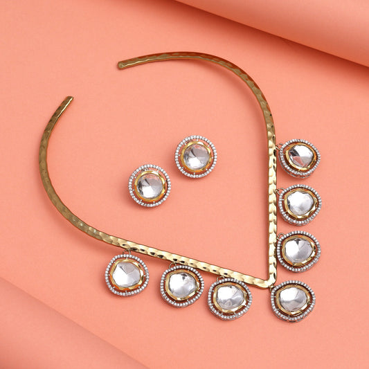 White Color Unique Handmade Brass Metal With Moissanite Kundan Apala Polish Hasli Necklace Of Jaipur (CZN1062WHT)