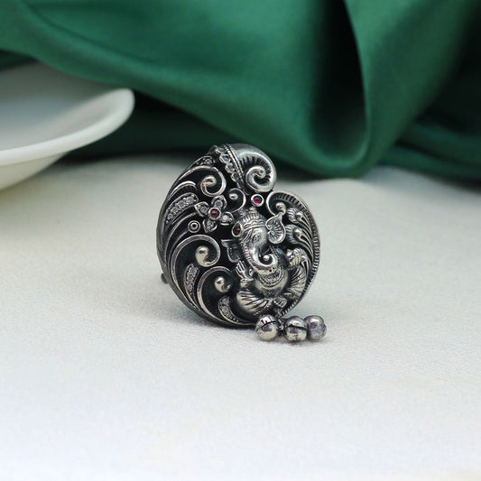White Color Lord Ganesha Premium Oxidised Rings (PGSR517WHT)