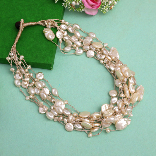 White Color Beautiful Natural Baruq Stones Necklaces (AMPN157WHT)