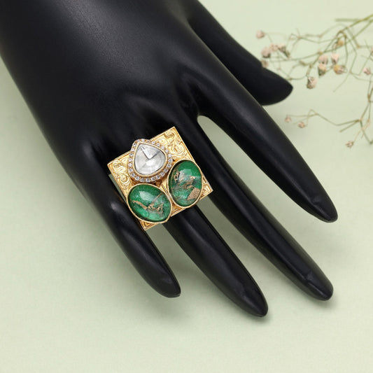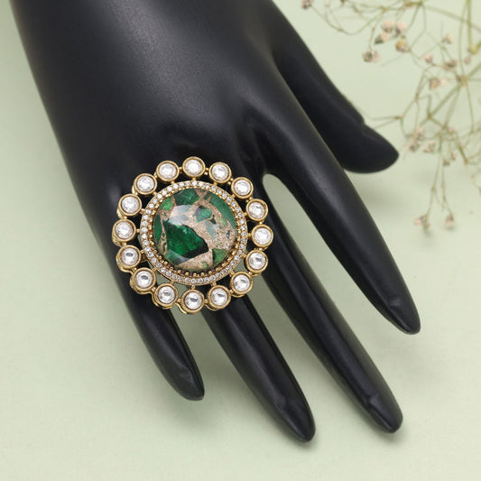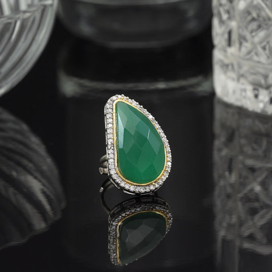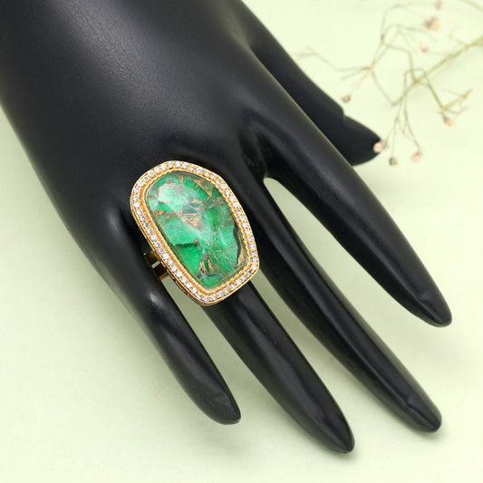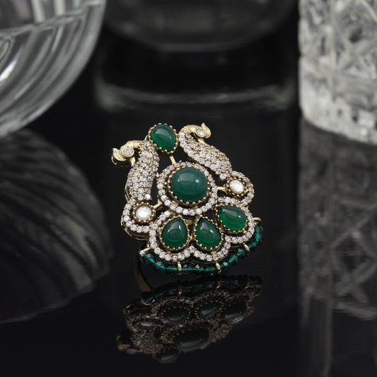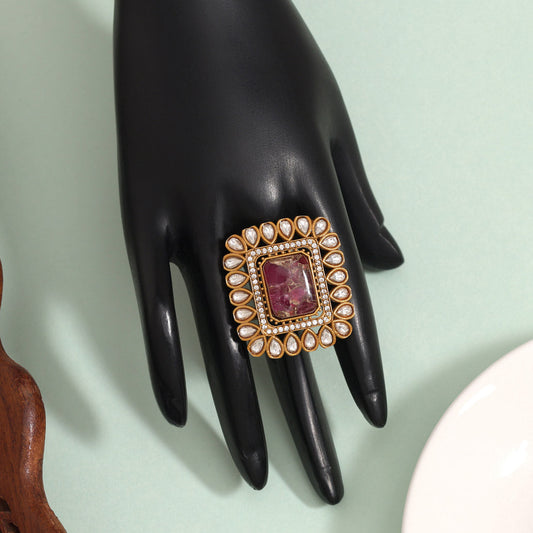 Gorgeous Rani Color American Diamond Finger Ring For Evening Celebrations