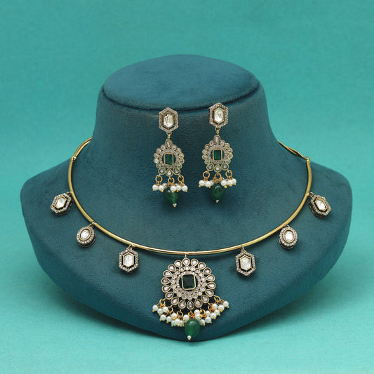 Green Color American Diamond Necklace Set (CZN1008GRN)
