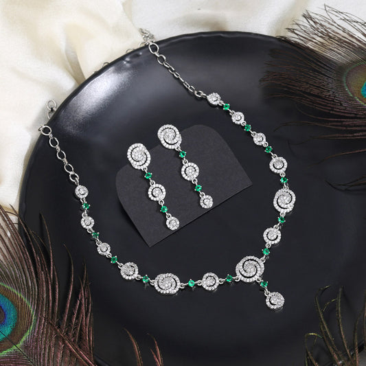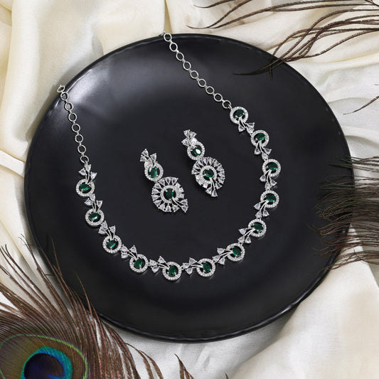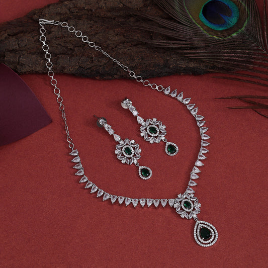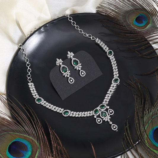 Green Color American Diamond Necklace Set (CZN1029GRN)
