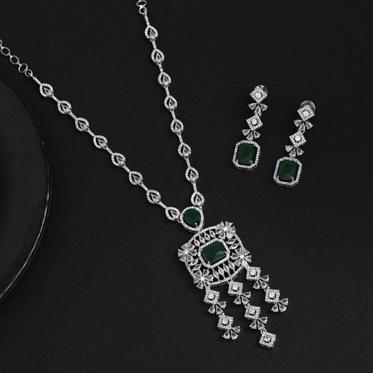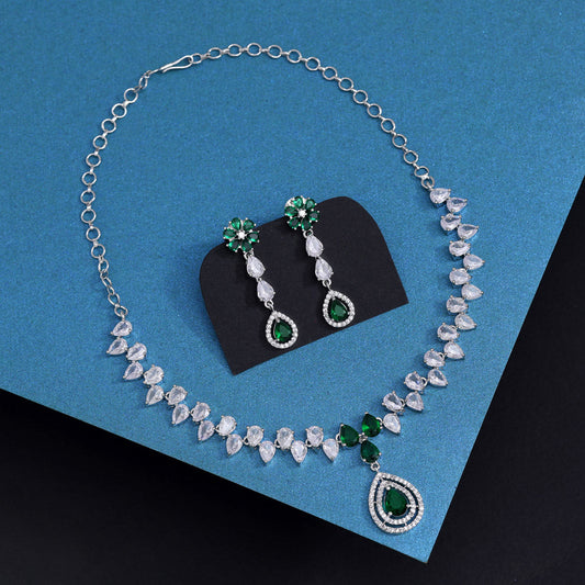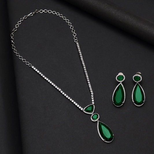 Green Color American Diamond Necklace Set (CZN1033GRN)
