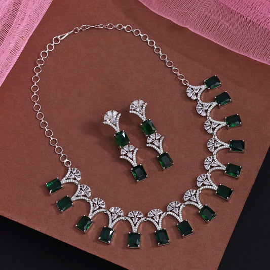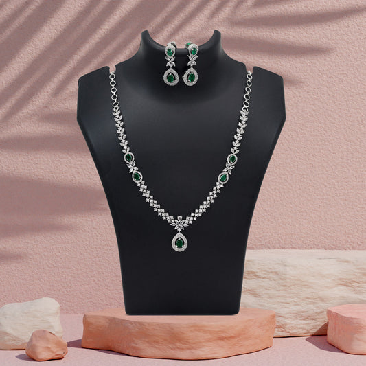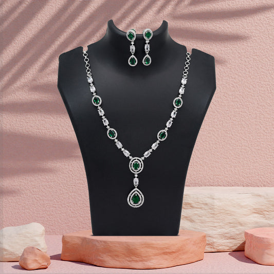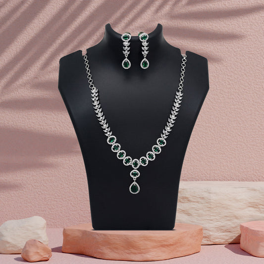 Green Color American Diamond Necklace Set (CZN1034GRN)