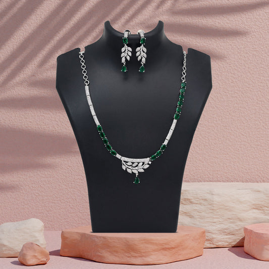 Green Color American Diamond Necklace Set (CZN1028GRN)