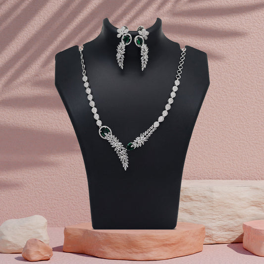 Green Color American Diamond Necklace Set (CZN1032GRN)