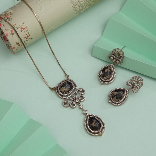 Glossy Black Color American Diamond Necklace Set For High-End Evening Wear