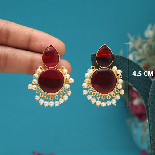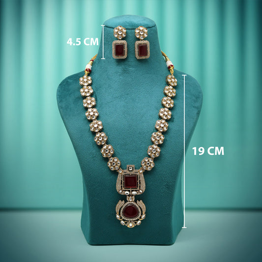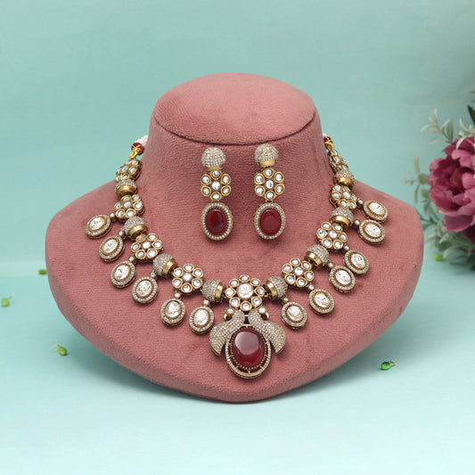 Maroon Color American Diamond Necklace Set For Classic Traditional Outfit Styling