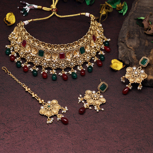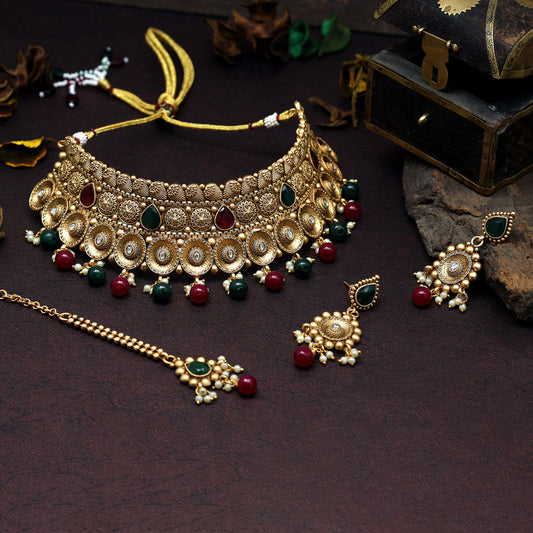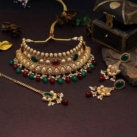 Maroon & Green Color Choker Premium Copper Necklace Set (CPRN209MG)