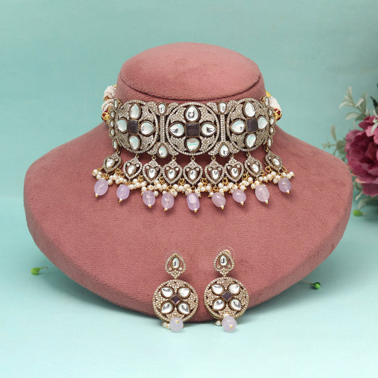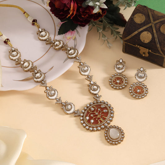 Light Brown Color Premium Quality Moissanite Kundan Necklace Set (CZN1070LBRW)