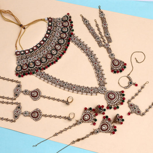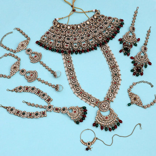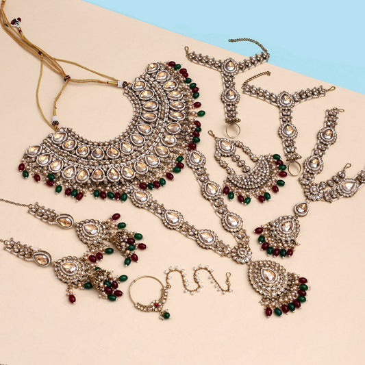 Maroon & Green Color Kundan Dulhan Set (BDL254MG)