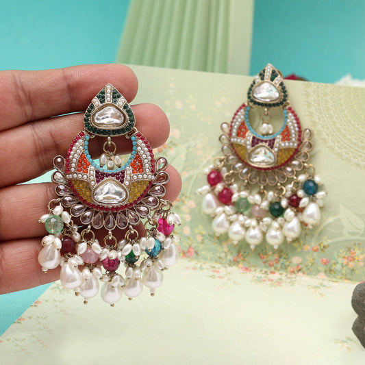 Multi Color Pakistani Kundan Earrings (KDE1016MLT)