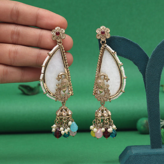 Multi Color Mother Of Pearl Kundan Earrings