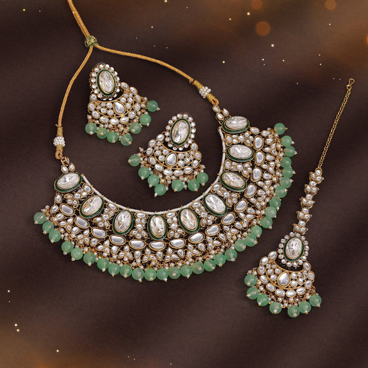 Green Color Kundan Necklace Set (KN1414GRN)