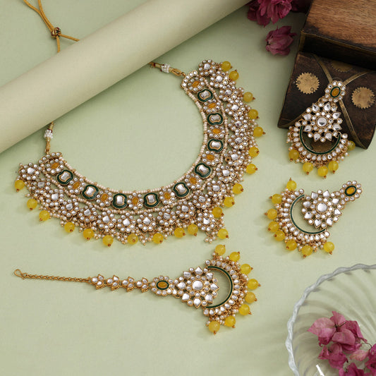 Yellow Color Meena Work Kundan Necklace Set (KN1457YLW)
