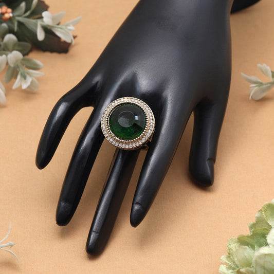 Elegant Green Color Kundan Ring For Women