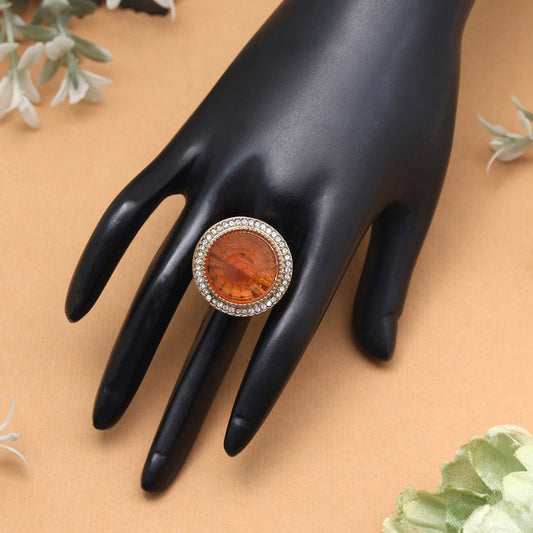 Bright Orange Color Kundan Ring For Women