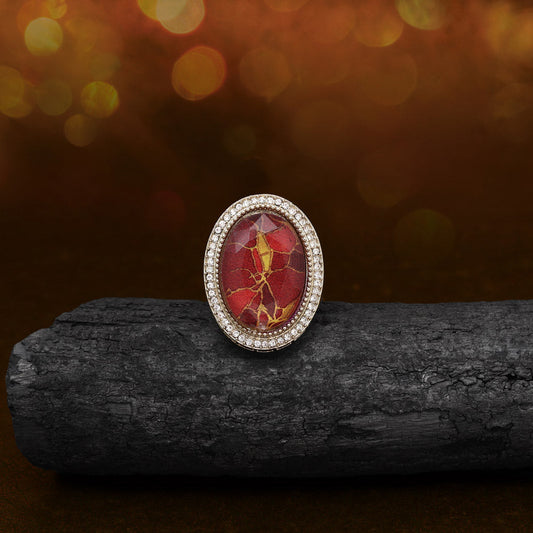 Bold Red Color Kundan Ring For Women