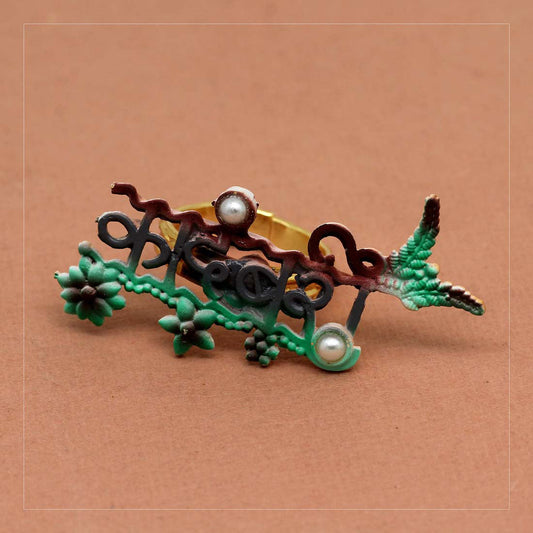 Bangles: Our bangles are handcrafted with care, adorned with motifs, pearls, and stones set against a sturdy brass base. The tribal bangles from our collection are especially popular, combining affordability with high-end fashion.