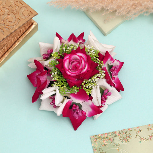 Rani & White Color Rose Flower Hair Juda//Bun For Bridal Use